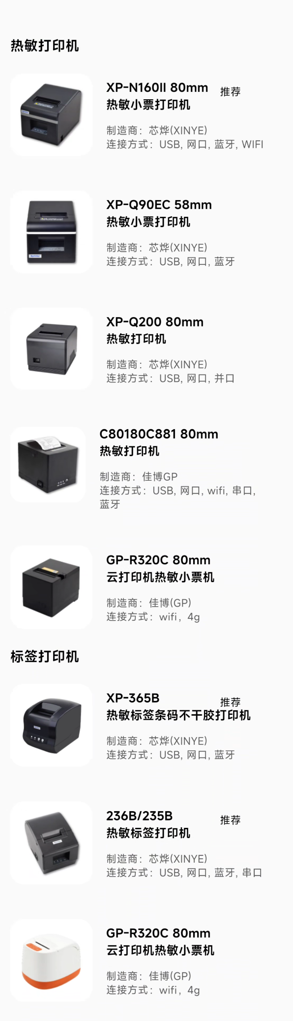 236B/235B ⭐️推荐 | 芯烨 (XINYE) | 热敏标签打印机 | USB, 网口,蓝牙,串口 |