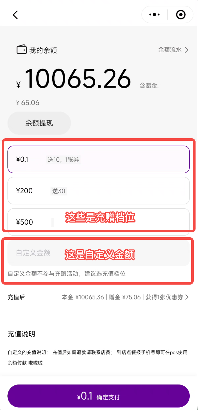 注意:自定义金额即使达到充赠档位,也不送赠金和优惠券。