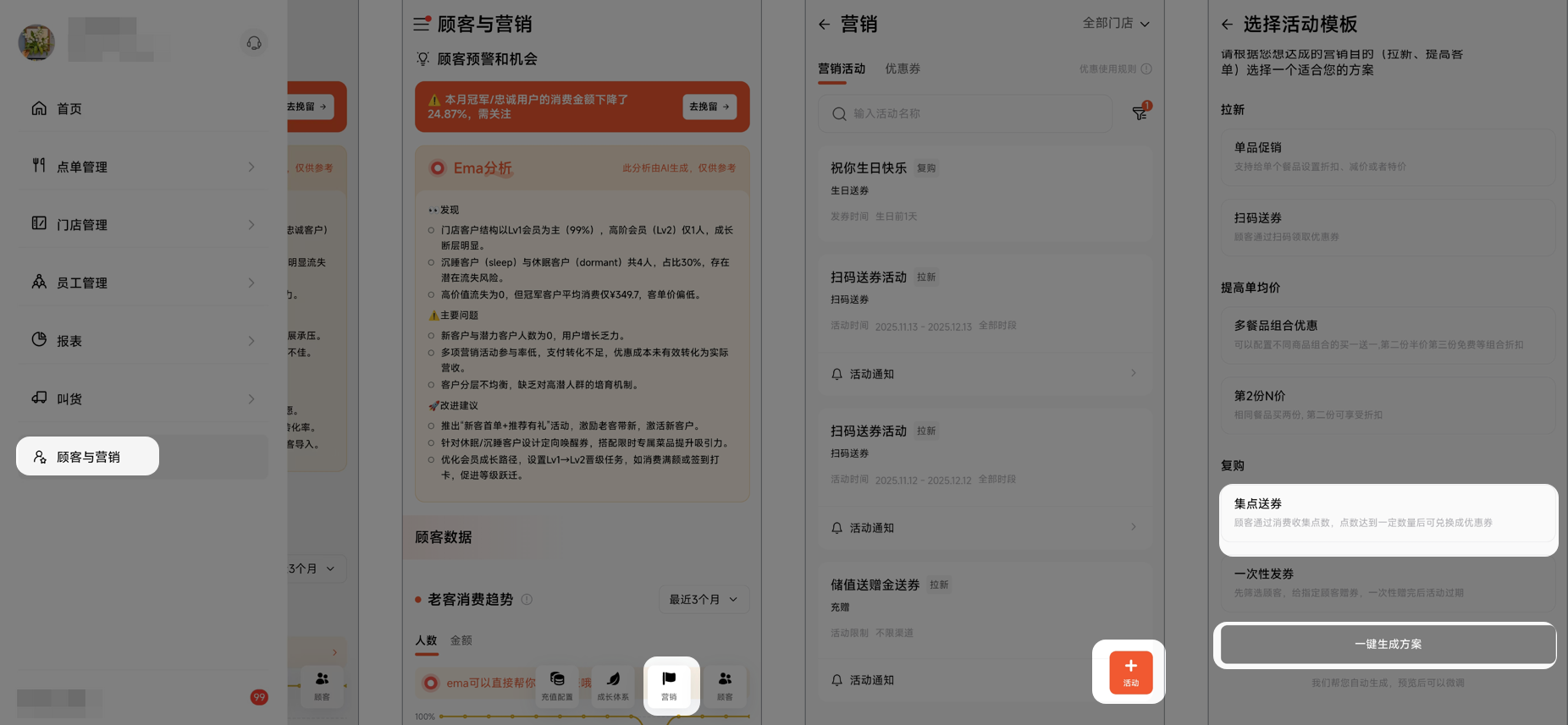 商家在壹向RMS app-顾客与营销-右下角“顾客”-点击这个顾客-点击集点活动,帮顾客兑换券。