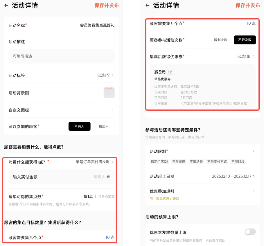 顾客需要集几个点:设置集点达到指定数量兑换优惠券。