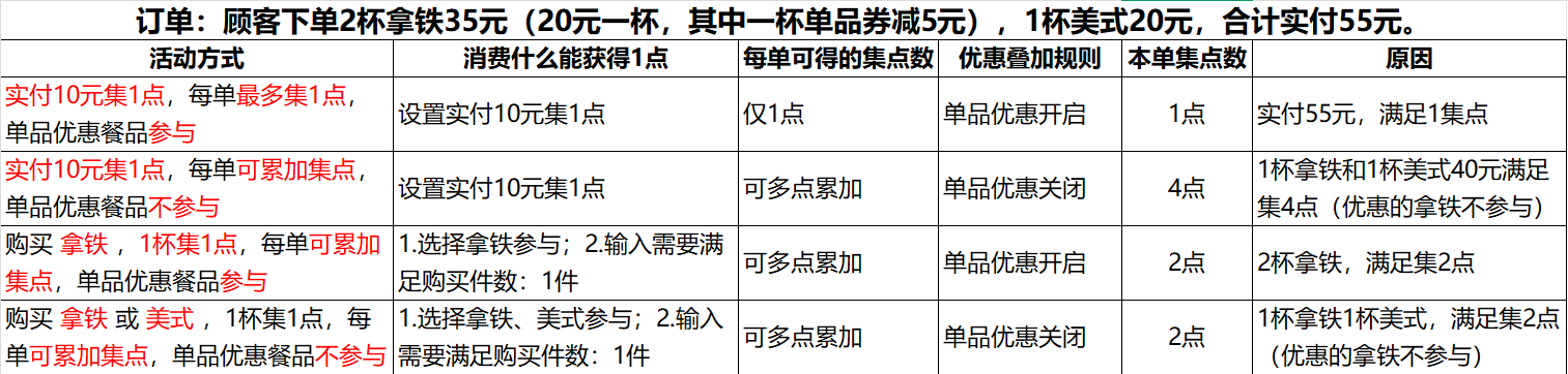 每单可得的集点数:可选 仅1点 或 可多点累加