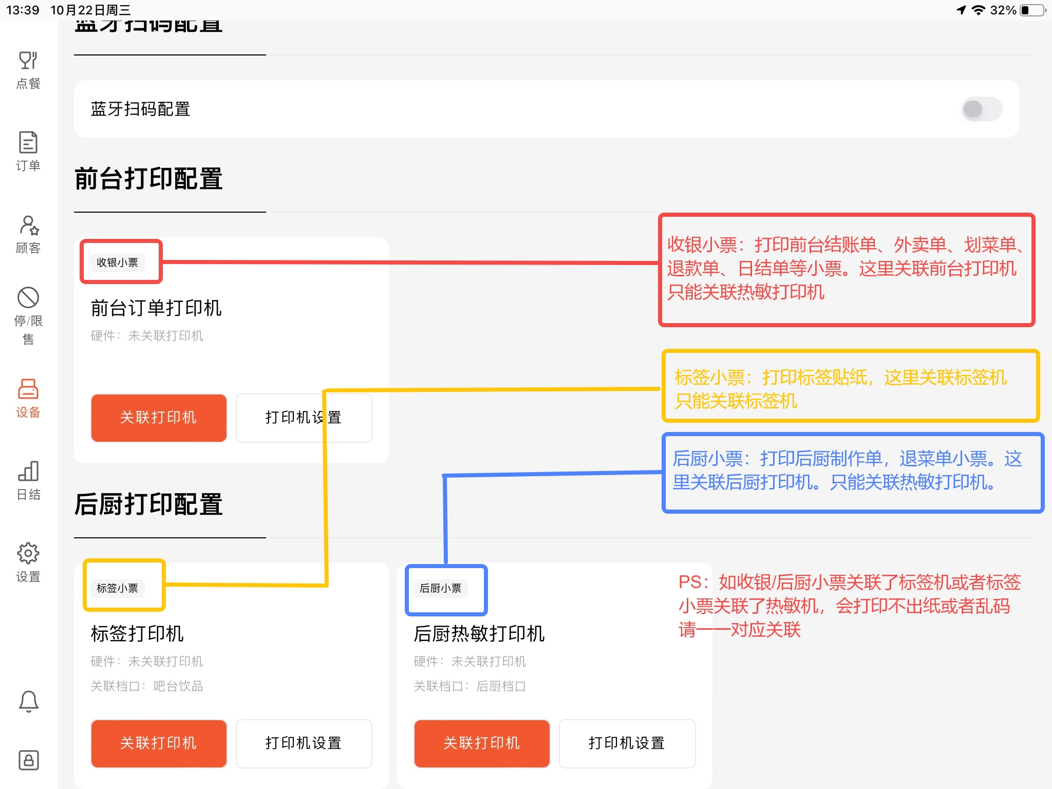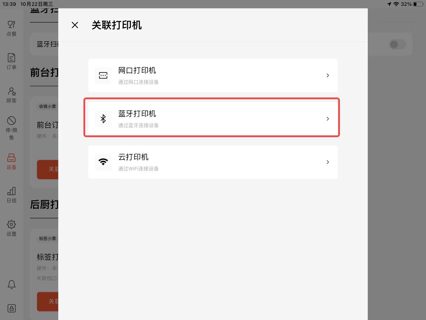 第二步:平板POS Lite APP中--设备--点击需要关联的打印机【关联打印机】。